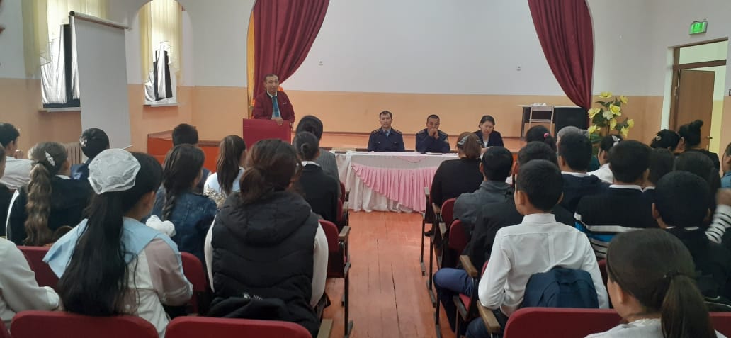 Қоғам үшін ең бастысы – тәуелсіздік, адам үшін бас бостандығы және уайым қайғысыз өмір.Оның кепілі – заңдылық. Тәуелсіздік төрімізден орын алған қоғамымыздағы ең басты құндылық – адам бостандығы. Адамның және адамзаттың құқықтары мен бас бостандықтарын қамтамасыз ету және қорғау – конституциялық заңдылықтың басты талабы. Қазақстанда салауатты өмір салтына қол жеткізуде, денсаулықты сақтау мен нығайтудағы басты міндеттің бірі – бала құқығын қорғау, зорлық-зомбылыққа қарсы күрес жүргізу.Осы мақсатта мектебімізде аудандық ішкі істер қызметкерлері және адами әлеуетті дамыту бөлімінің әдіскерлерімен оқушыларға түсіндірме жұмыстары жүргізіліп отырады.